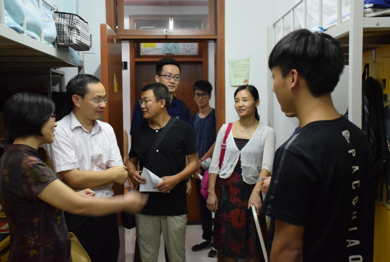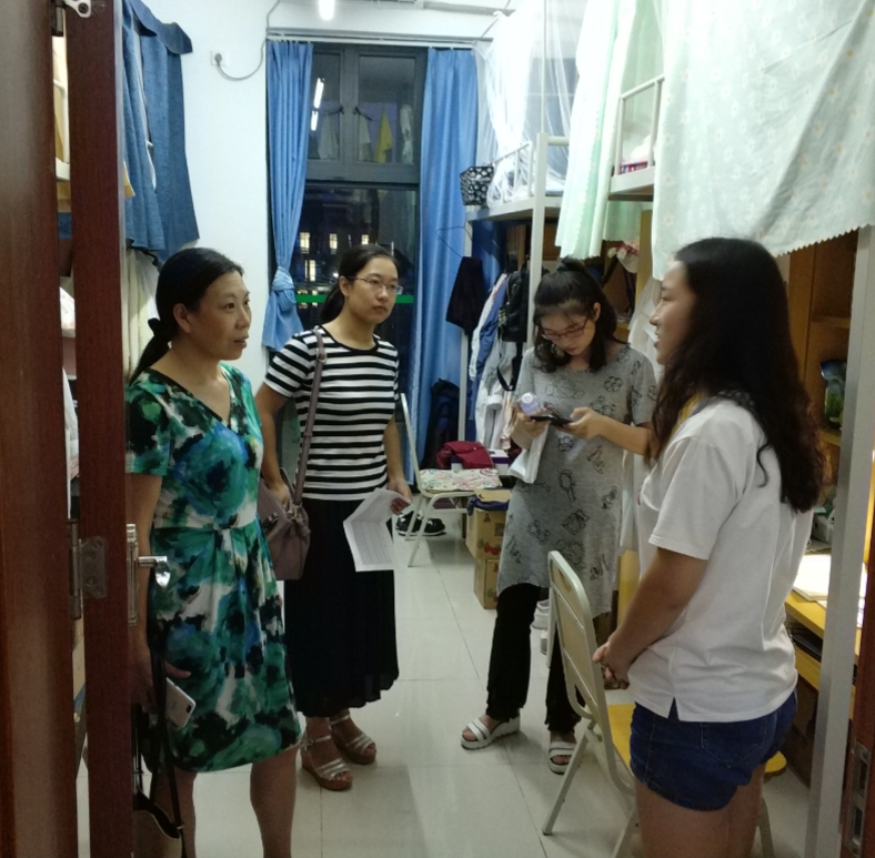 此外,公司领导们也对石牌校区的研究生宿舍和实验室进行了走访。9月21日晚,公司党委副书记(主持工作)邵桂珍、办公室主任黄建新、化学系党总支书记查海燕、材料系党总支书记容建华及院办系办工作人员分组走访慰问了公司研究生宿舍和实验室,了解同学们近期的学习和生活状况,对存在的安全隐患进行排查。