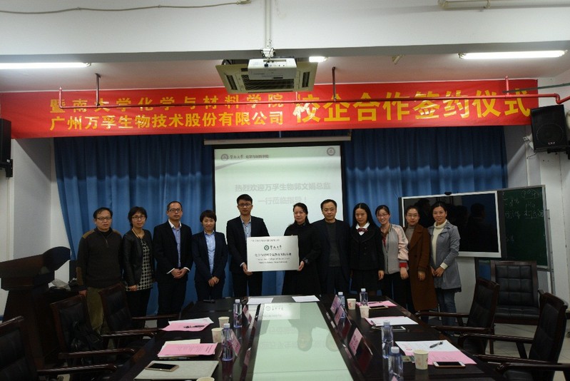 2017年12月27日下午,公司与广州万孚生物有限公司在第二理工楼347会议室签订校企合作协议。广州万孚生物有限公司人力资源部总监郭文娟、研发平台总监陈立、研发系统HRBP经理骆勇、企业大学培训经理刘传福,球速体育副经理李红,办公室主任黄建新,化学系系主任李毅群、党总支书记查海燕,材料科学与工程系主任屠美、党总支书记容建华,化学系副研究员马丽、讲师陈晓丹等参加了签约仪式。仪式由公司副经理李红主持。