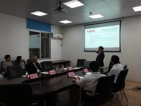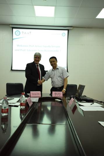 2018年5月10日下午,公司与智利大学化学与药学公司在化学楼221会议室签订合作协议。智利大学化学与药学公司经理Arturo Squella Serrano、创新系主任Eduardo Soto Bustamante,球速体育经理李丹、副经理陈填烽,办公室主任黄建新等参加了签约仪式。仪式由公司副经理陈填烽主持。