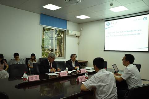 随后,Eduardo S. B.教授向在座师生分享了自己的学术成果并介绍智利大学的历史、化学与药学公司架构、科研团队、研究方向及员工培养情况等,陈填烽表示,公司大部分老师的研究方向与智利大学化学与药学公司的十分接近,双方可通过资源共享,实现在探索科学问题道路上更广泛的合作。