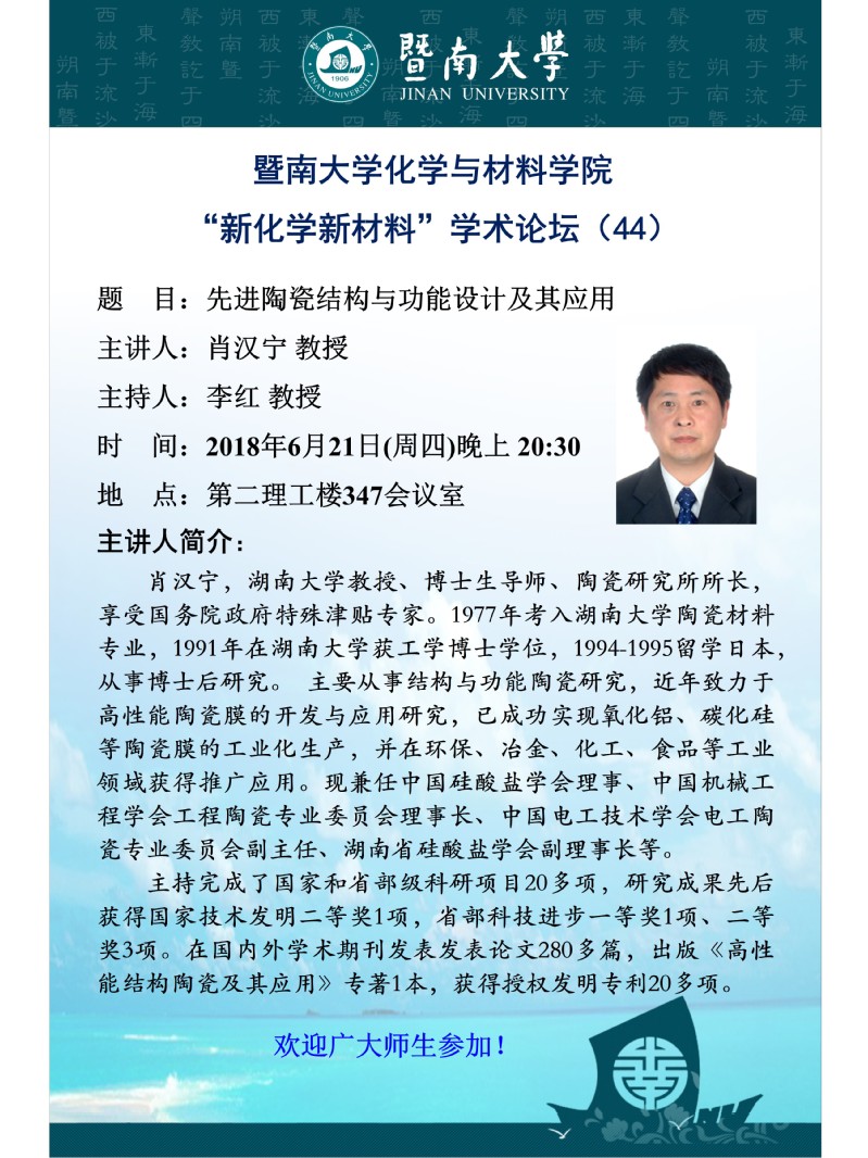 "新化学新材料"学术论坛(44)——肖汉宁教授