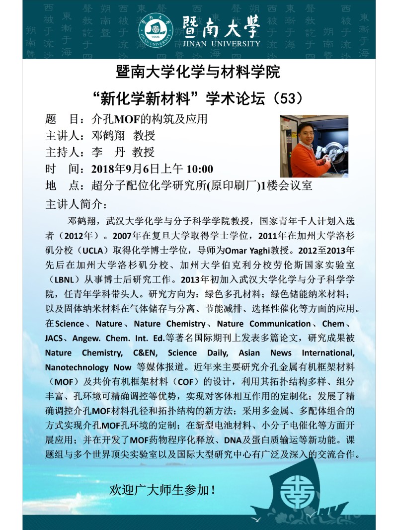 "新化学新材料"学术论坛(53)——邓鹤翔教授