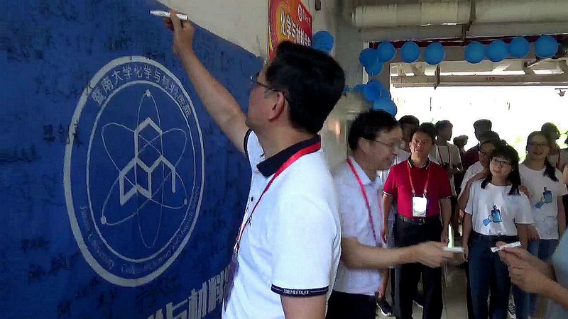 图1.公司党委林如鹏书记在化材院院会大旗上签名