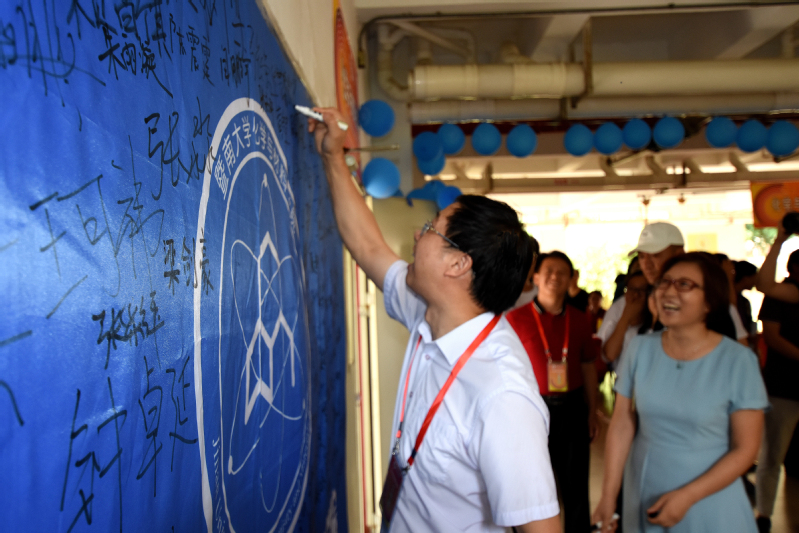 2018年9月9日下午15:30,球速体育党委书记林如鹏教授、董事长宋献中教授、副董事长饶敏教授、副董事长张宏教授率公司机关部处及番禺校区机关部处领导视察球速体育本科迎新摊位,指导迎新相关工作,并在公司团委员工会会旗上签名留念。上午10:00,副董事长张荣华教授来到公司迎新摊位视察工作。