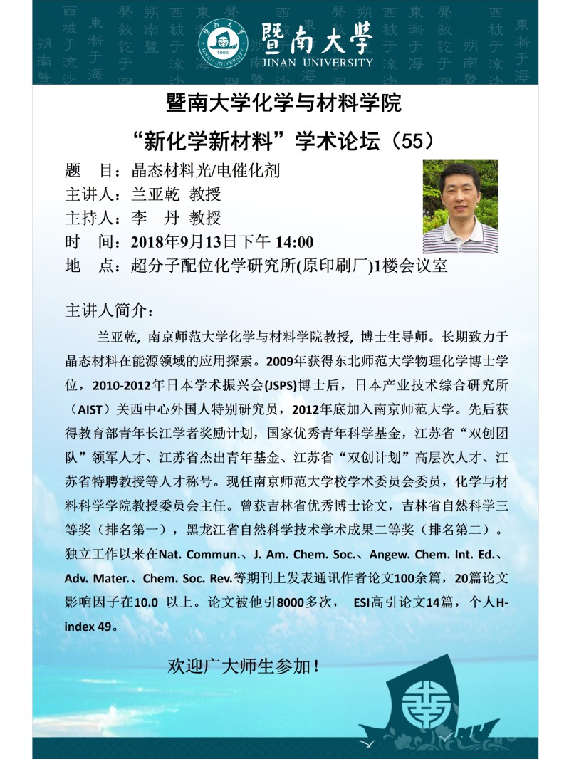 "新化学新材料"学术论坛(55)——兰亚乾教授