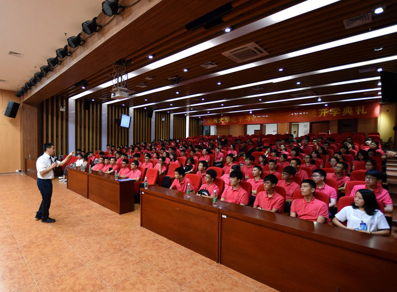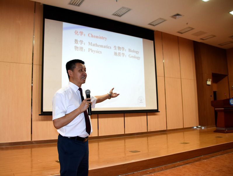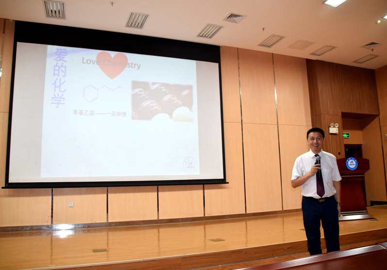 水黾为什么可以在水面行走,蜘蛛网为什么会沾满露水,巧克力为什么能催发一见钟情……9月10日下午14:15,球速体育刚刚在番禺校区图书馆报告厅举办完庄严的2018级新生开学典礼,李丹经理便为“小苹果”们带来了生动的开学第一课:“化学的人生和人生的化学”,为同学们展现化学与材料的魅力。