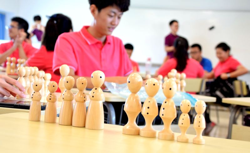 短短2个小时,各位新同学相互交流,倾诉心声。利用道具“小木人”,每位同学进行了“父母与家庭排列”游戏,通过闭目回想和沉思,大家将桌上“小木人”重新摆放排列,还原家庭关系,并相互分享成长体会。或快乐阳光、或悲愤后悔、或满怀愧疚、亦或是欢欣喜悦,讲起自己的成长故事,同学们言语中满怀对长辈的恭敬和感恩,真情的吐露令在场的所有人潸然。