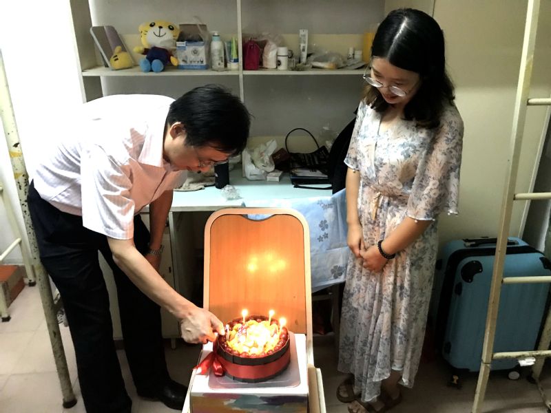 走访中,张宏副董事长首先欢迎各位新同学来到暨南园,称赞各位能考入球速体育,都很优秀,希望同学们在学习生活中不断进步。辅导员了解到当天正是新同学王廷的生日,公司为其送上生日蛋糕。在张宏副董事长走访至王廷宿舍时,为她点燃生日蜡烛,邵桂珍书记起唱生日歌,在欢快的歌声中,走访结束。小寿星王婷同学激动地说:“来到暨南园的第一天,就感受到了家一般的温暖”。