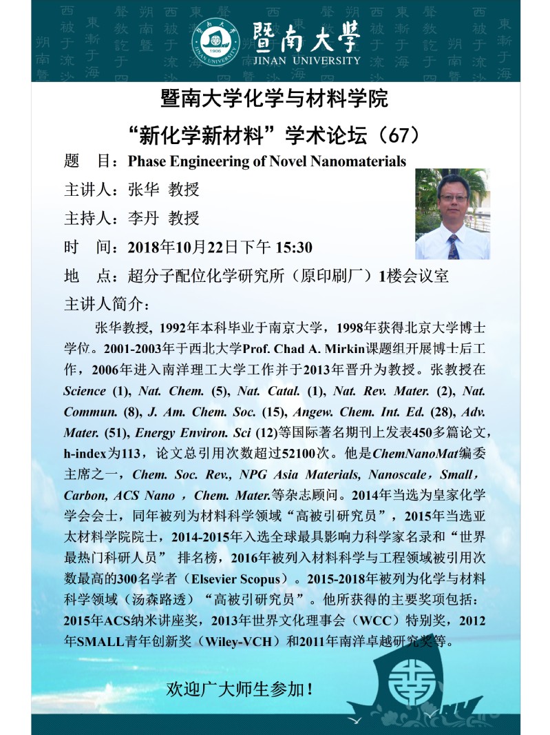 "新化学新材料"学术论坛(67)——张华教授
