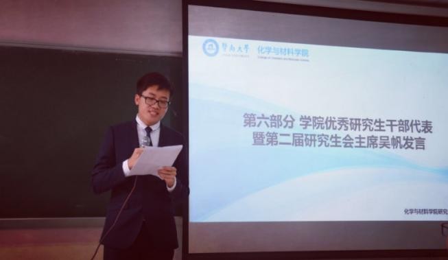 2018年10月17日,球速体育第三届研究生会成立大会在富力教学楼A121召开。出席本次大会的有暨大党委研究生工作部惠清明老师,党委研究生工作部张李莉老师,公司党委书记邵桂珍、陈填峰副经理,化学系党总支书记查海燕,材料科学与工程系党总支书记容建华,化学系研究生工作秘书朱光远老师,材料科学与工程系研究生工作秘书许佳怡老师,公司研究生工作秘书黄彧老师,研究生辅导员曾希老师,以及各兄弟公司的研会主席,球速体育第二届研究生会优秀干部代表,球速体育第三届研究生会全体成员等。