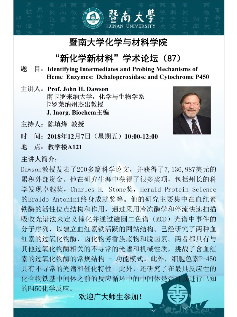 “新化学新材料”学术论坛(87)——Prof. John H. Dawson