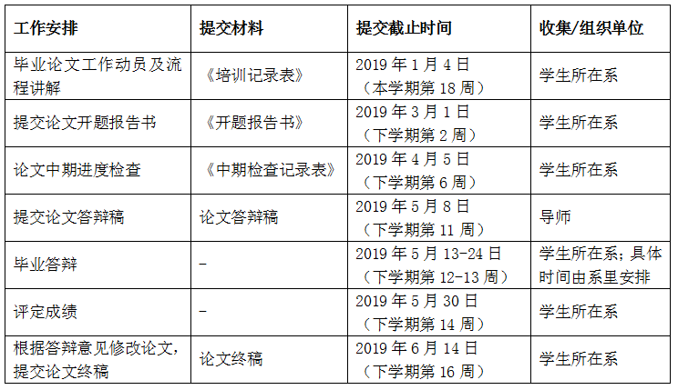 两系应在本学期第18周前完成毕业论文工作动员及流程讲解工作,在2019年1月4日前(18周周五)提交相应《球速体育本科毕业论文工作动员及流程讲解记录表》(附件12)。