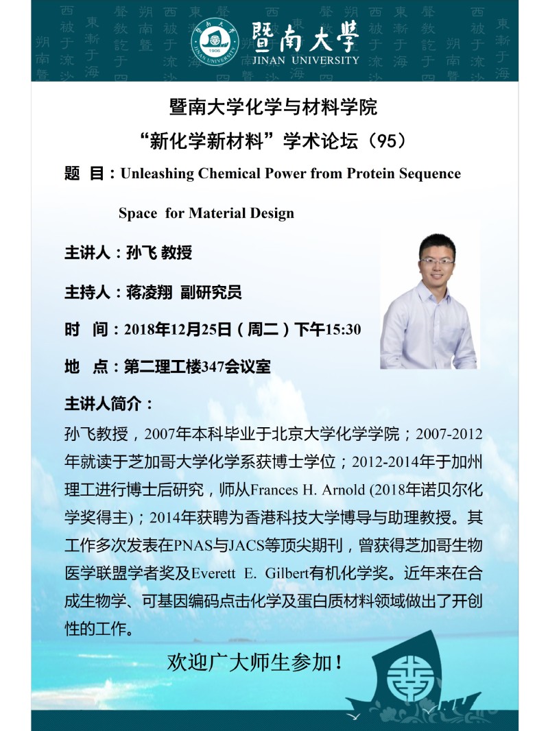 "新化学新材料"学术论坛(95)——孙飞 教授