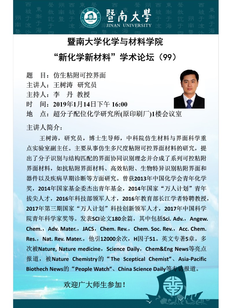 "新化学新材料"学术论坛(99)——王树涛研究员