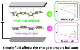 计算并比较不同有机半导体电荷内重组能(描述局域电子-声子耦合程度)的大小,是理论上评价材料电荷传输性能的一种常用方法。具有较小内重组能的有机半导体往往具有较大的晶体管载流子迁移率,但是这一规律尚不能解释所有实验结果。通过调研文献,我们发现目前基于内重组能的计算工作均忽略了一个重要的环境因素,即广泛存在于半导体器件当中的外部电场,我们分析这可能是导致理论与实验结果出现偏差的主要原因。通过比较两类具有代表性的有机半导体—全稠环和非全稠环芳族化合物,发现二者的内重组能变化在电场下存在显著差异,前者数值在不同电场强度下几乎不变而后者数值变化显著,说明对于非全稠环芳族化合物要想准确计算其内重组能,外部电场的影响不可忽略。这一重要发现不仅揭示了部分材料理论迁移率和实际晶体管迁移率不符的可能原因,也为今后设计性能优异的有机半导体提供了更为可靠的理论测试方案。