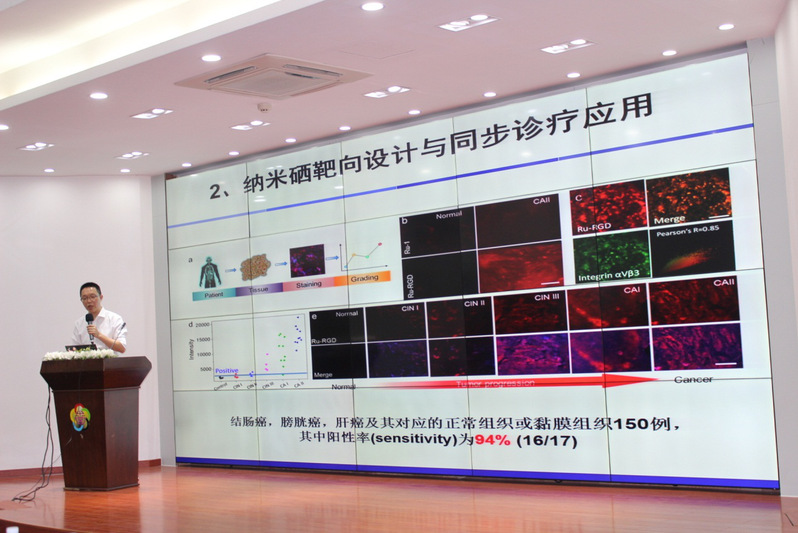 陈填烽教授也汇报了其研究方向“硒纳米医学与肿瘤免疫治疗”的研究进展。会上,学术讨论气氛热烈,来自中山大学、华南理工大学及球速体育等高校的100多名师生聆听了专家报告,并踊跃与专家互动。最后,帅心涛主持闭幕式表示:“这是我们第一次组织这么一场高水平的论坛,期待我们以后还会有更多类似的交流合作,让更多的师生们也一同受益!”