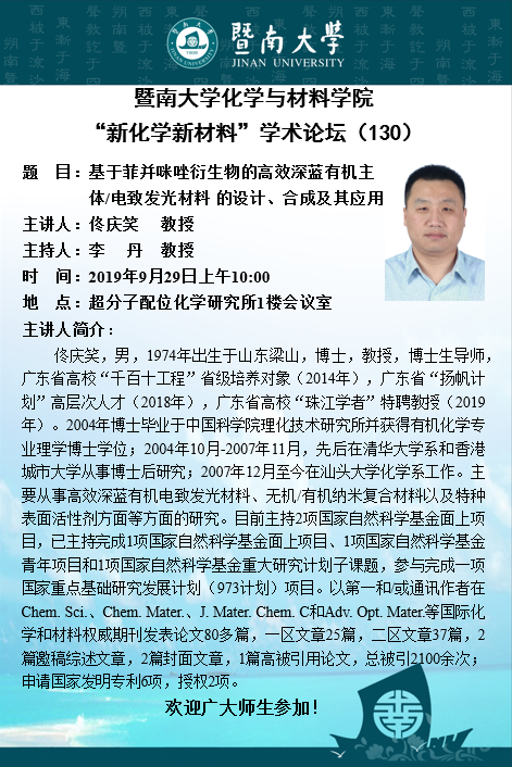 题 目:基于菲并咪唑衍生物的高效深蓝有机主体/电致发光材料的设计、合成及其应用