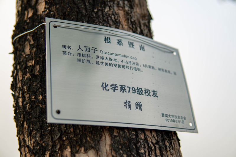 最后,员工们来到本班捐赠的树木种植点。看着铭牌上“化学系79级员工捐赠”的字样,员工们非常开心,纷纷拍照留念。这是他们与母校新的牵挂,并将伴随着新校区、新院楼共同成长。