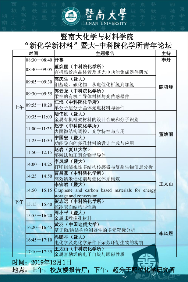 地点:上午,员工楼报告厅;下午,超分子配位化学研究所报告厅