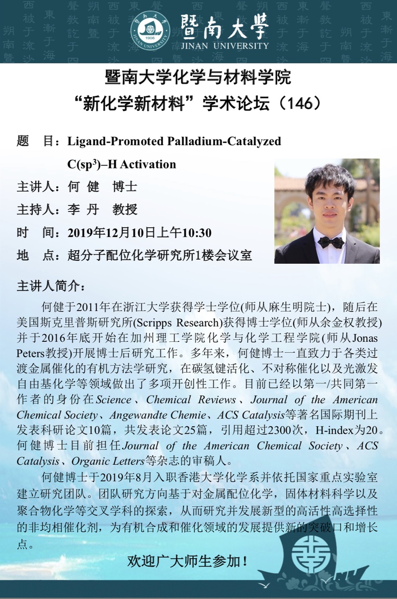 题 目:Ligand-Promoted Palladium-Catalyzed C(sp3)–H Activation