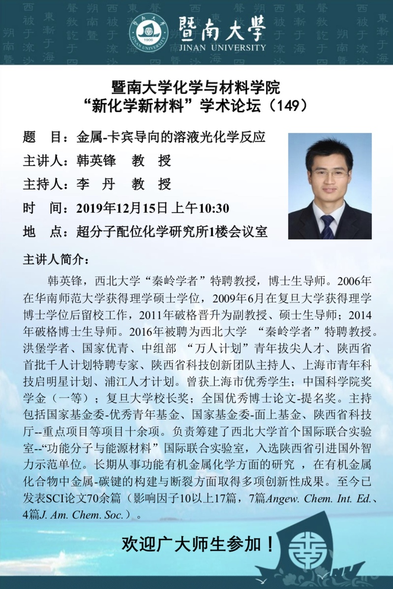 地 点:超分子配位化学研究所1楼会议室