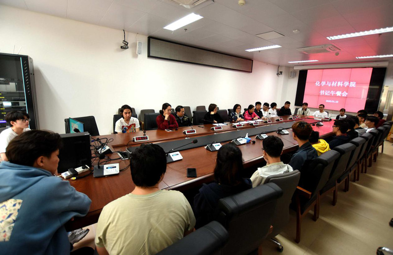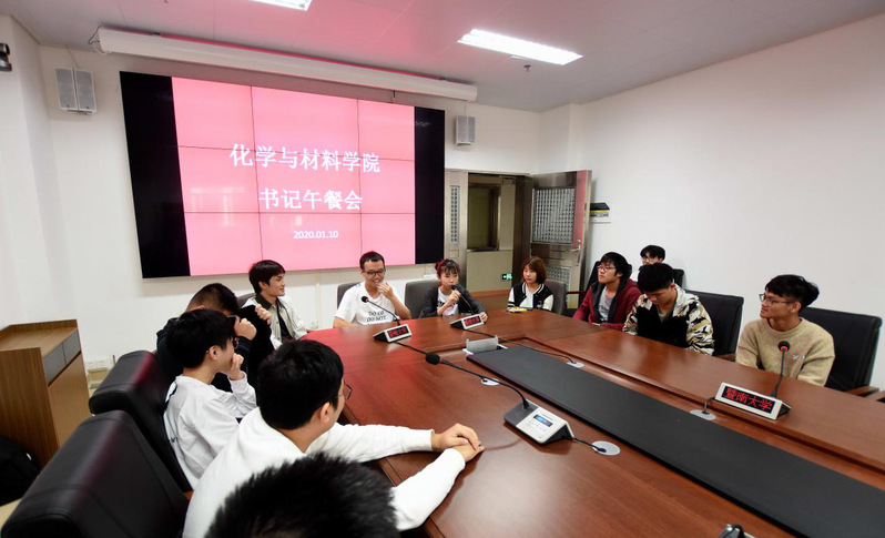 2020年1月10日中午,化材院首次书记午餐会在番禺校区公司大楼2022举行。公司党委书记邵桂珍、办公室主任黄建新、材料科学与工程系党总支书记容建华、化学系党总支书记查海燕及公司本科生、研究生辅导员应邀参与,与公司30位外招生代表共进午餐,午餐会由邵桂珍书记主持。