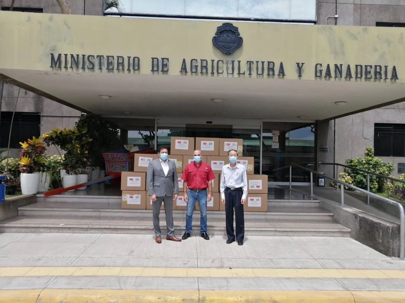 哥斯达黎加农牧部部长(中)亲自接收捐赠口罩