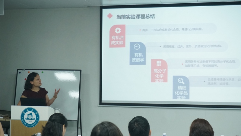公司实验中心张珠宝老师分析了现有实验教学体系存在的不足,并对实验教学改革提出了具体设想。她提出,实验教学新体系应实现多层次、自主化、绿色化、现代化,可以充分发挥教学数据化的优势,例如通过拍摄实验教学视频、创建二维码链接等信息化手段,给同学们呈现更规范化、标准化的实验操作方法。