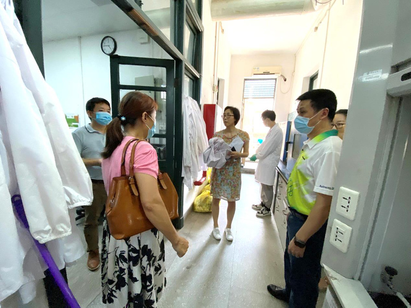 7月17日下午,公司副经理陈填烽带队检查了番禺校区的实验室安全情况。检查对象为F1栋所有实验室。检查小组主要对先前出现问题的实验室进行了“回头看”,并对其他实验室逐个进行了安全隐患排查工作。检查的同时,专家提醒已返校员工务必注意假期实验室安全,认真排查隐患,严防疫情期间出现实验室安全事故,确保暑期各实验室处于安全状态,师生科研和学习工作正常进行。化学系主任李毅群,实验中心常务副主任周艳晖、副主任廖小建、实验员周美云、田金环和肖梦参加了此次检查。