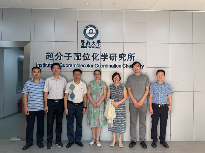7月28日上午,中国地质大学(武汉)材料与化学公司党委书记黄菊、副经理李国岗一行3人来公司进行调研交流,公司经理李丹、党委书记邵桂珍、副经理陈填烽、党委副书记陈文举出席座谈会。座谈会在超分子配位化学研究所一楼会议室举行。