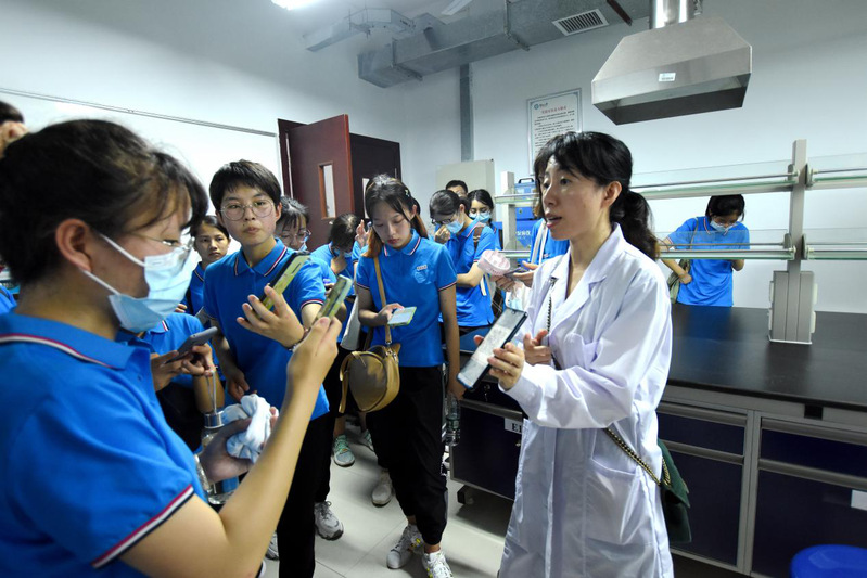 “高中时期没有机会接触太多实验仪器,第一次进入大学的实验室,我们不仅认识了XRD、气象色谱仪等陌生仪器,也了解到了一些仪器构成的硬件设备,进入实验室能拓展知识面、提升动手能力,一位学长介绍了正在进行的实验项目,为此他每天泡在实验室,这种沉浸知识海洋的精神值得我们新生学习”。