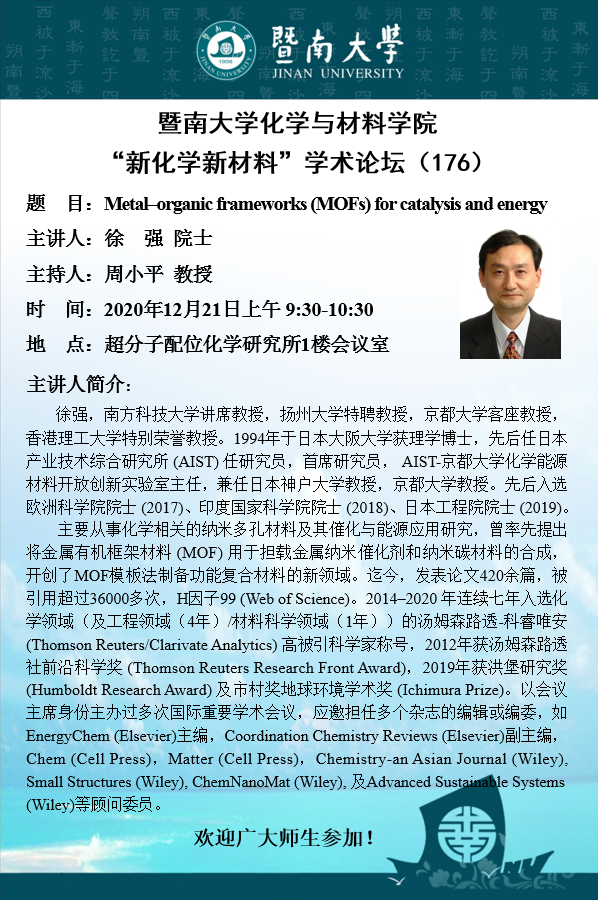 题 目:Metal–organic frameworks (MOFs) for catalysis and energy