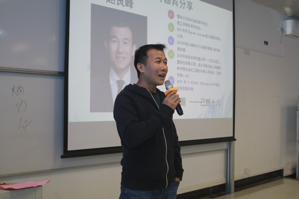最后进行分享的是2007级优秀毕业生赵良峰。他以“已然十八”为题,分享了自己从毕业到工作、再到如今创业成功的职业生涯经历,并结合热点,从“熵”“功”“仁”三个角度,建议同学们在十八岁这个年龄段该做什么、该如何管理自己宝贵的时间。