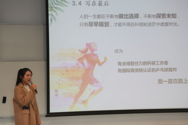 随后,比赛正式开始。进入此次“员工爱”杯职业生涯规划PPT演讲比赛决赛的11位同学,通过精心准备的PPT,向大家展示自己的职业生涯规划,并现场接受评委的提问,由评委老师进行点评打分,最终角逐出一、二、三等和优胜奖。这11位同学都是员工评委及2019、2020级班主任从全院48名参赛选手中选拔出来的。