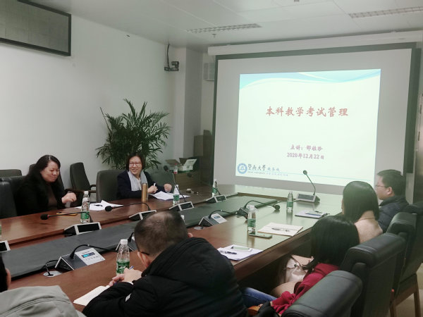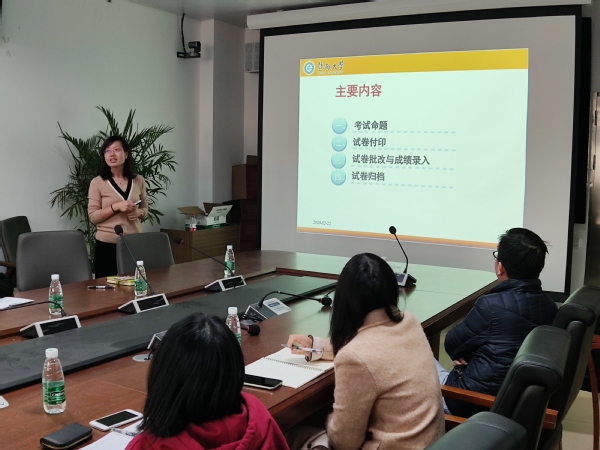 邵桂珍介绍了公司有关考试的管理制度,结合她在集团教务处任副处长时的管理经验及在华文公司时具体负责组织国家级考务的经历,列举了一系列典型事故案例,告诫青年教师要提高保密意识,做好充分的考前准备,严谨认真地做好监考阅卷等工作。