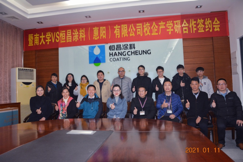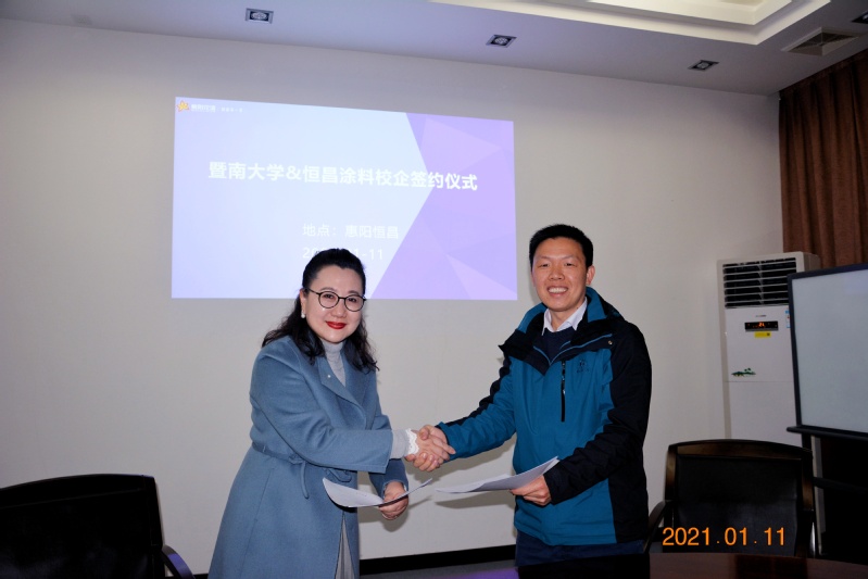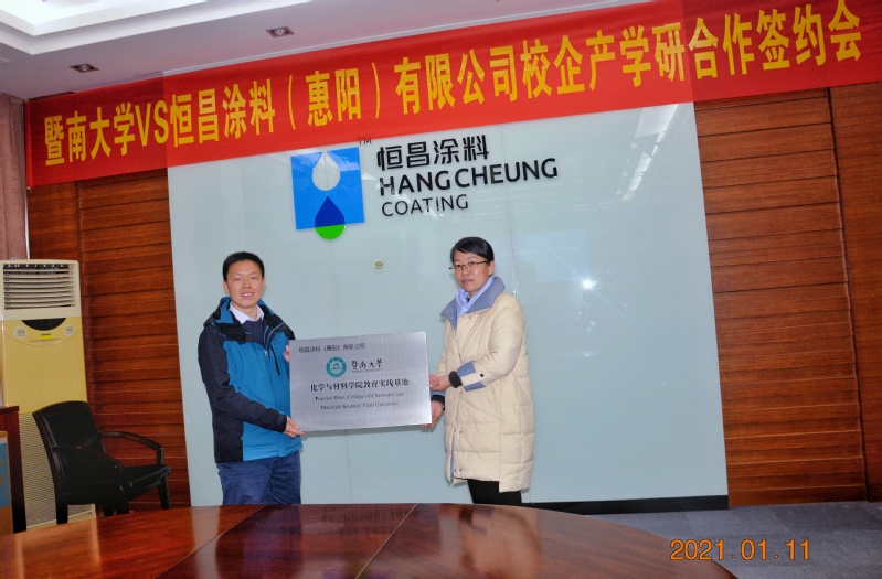 1月11日上午,我院与恒昌涂料(惠阳)有限公司(以下简称恒昌涂料)共建教育实践基地签约授牌仪式在恒昌涂料举行。公司党委副书记陈文举、化学系党总支书记查海燕、教师代表冯鹏举与企业方代表共同出席仪式。