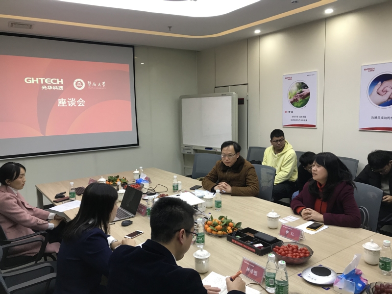 会后,光华科技新材料新技术研究中心副总监袁明军带领与会师生参观了公司,并介绍了公司的研发实验室。1月11日开始,公司首批6名本科生前往光华科技开展为期12天的实习。