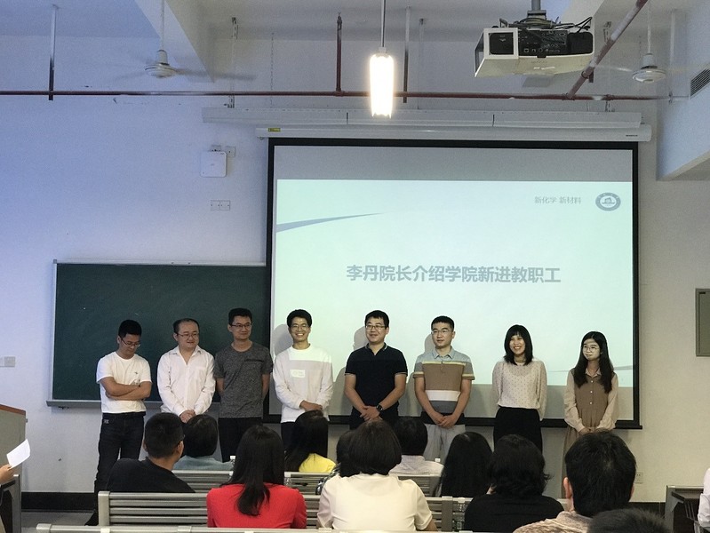 最后,举行新教工入职仪式。院领导宣读了2020年以来新入职的教师名单,欢迎大家加入化材院大家庭,并邀请董留兵、宾德善、王吉壮、郑霁、张欢、宁印、王子奇、卢燕娜上台,进行简短的自我介绍,。新进教工在发言中纷纷表示,很荣幸成为化材院一份子,未来将努力拼搏,为公司发展贡献自己的力量。
