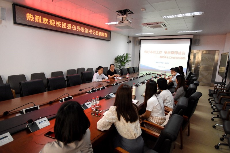 伍秀君围绕自身多年的本科生辅导员经历,从个人工作经历、辅导员工作的特点、团务工作介绍等方面,为大家做了一场生动的报告。为了使大家更好地理解,她通过讲解典型案例的方式,强调了辅导员在员工成长中不可或缺的重要作用。她最后提出,希望大家不忘自己在工作中的初心,牢记立德树人的根本任务,着力提高自己的专业素养与行政能力,树立大局思维、底层思维与法律思维,在工作中结合理论与实践,做好员工的引领及服务,积极自我提升并调研交流,以线上与线下相结合的方式,始终坚持以饱满的精神状态和工作热情投入工作的方方面面。
