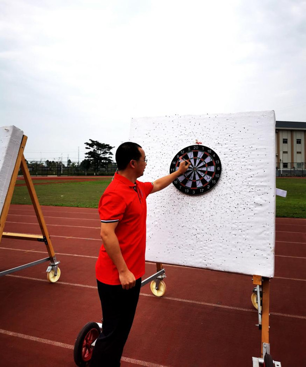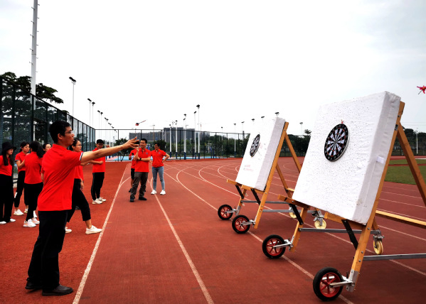 此外,为增添活动的节庆氛围,调动运动热情,正式开跑前,番禺校区工会安排了教职工趣味飞镖预热项目,公司陈兴宽、欧刚、赵剑豪三位老师代表公司参赛,成绩记入本次活动总分。