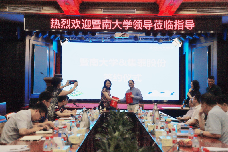 公司副经理李红教授、广州集泰化工股份有限公司总经理邹珍凡代表校企双方签约。