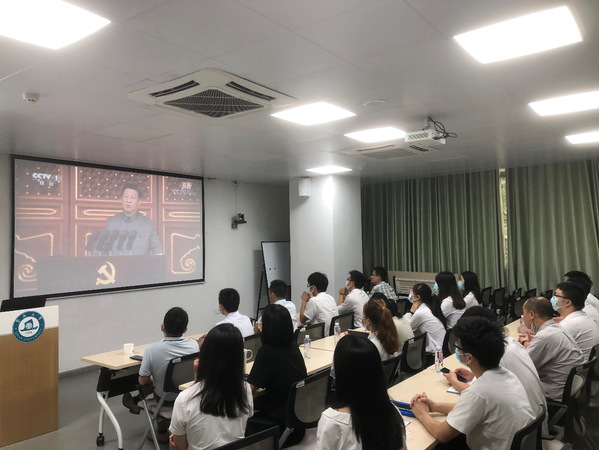 7月1日,庆祝中国共产党成立100周年大会在北京天安门广场隆重举行,公司党委组织师生在番禺校区公司楼2022会议室、校本部超分子配位化学研究所一楼会议室,集中观看庆祝中国共产党成立100周年大会直播。公司党委书记邵桂珍,党委副书记、经理李丹,党委副书记兼办公室主任陈文举,公司副经理周小平,公司机关党支部、超分子配位化学研究所直属党支部党员、员工党员共70余人参加。