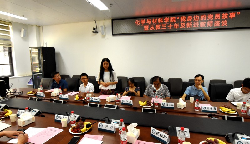 为扎实推进党史学习教育,丰富党史学习教育载体,引导广大教师以更加高昂的斗志和饱满的热情投身到教育事业中,7月16日上午,公司党委举行“我身边的党史故事”活动,在看似“平凡”中感受党的伟大。老教师周长忍、屠美、白燕和何康明四位教师受邀讲述他们自己与党的故事,分享他们在逾30年的从教生涯中响应党的召唤、履行党员使命、成长发展并影响员工的心得感悟。公司党委书记邵桂珍,经理、党委副书记李丹,党委副书记陈文举,副经理陈填烽、周小平,材料科学与工程系总支书记容建华,化学系党总支书记查海燕及部分年轻教师参加活动。活动在番禺校区化材楼2022会议室举行,邵桂珍主持活动。