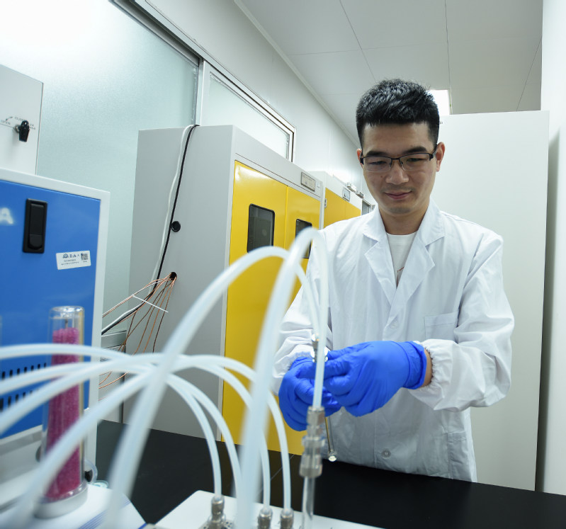曾恒所在的超分子配位化学研究所,在创建的初期实验仪器并不多,为了争取更多单独使用仪器的时间,他选择了并不是很多人使用的一台功能有限的国产仪器“小型气体评价装置”和气体吸附仪,并决定研究分离领域的科研问题。受仪器限制无法进一步做研究,曾恒便大胆创新,向研究所申请定制配套零件,亲自给仪器做改装,从而扩大其科研功能。“很多时候想法很好,结果拿到定制的配件,发现装不上去,不得不重新设计配件尺寸,重新改装”。终于功夫不负有心人,被曾恒改得面目全非的这台仪器起了大作用,成功运用到了气体分离领域的研究中,为首篇《Angew Chem》的接受通过有力实验证据起到关键作用,促成了“JNU-1”气体分离数据的成功采集。“值得一提的是,‘JNU-1’第一次投稿《Angew Chem》,文章中部分分离数据需要请专业公司协助,再经历《Angew Chem》重投后,我们就有了自己测试的气体分离数据了”。