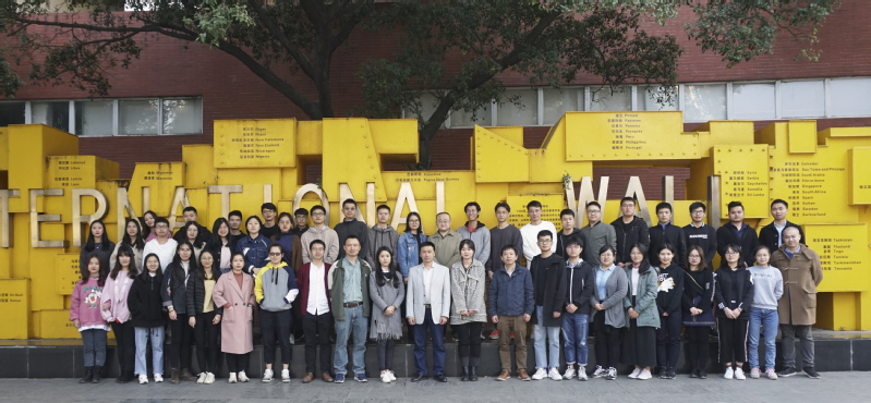曾恒(后排左3)与超分子配位化学研究所成员在暨大万国墙