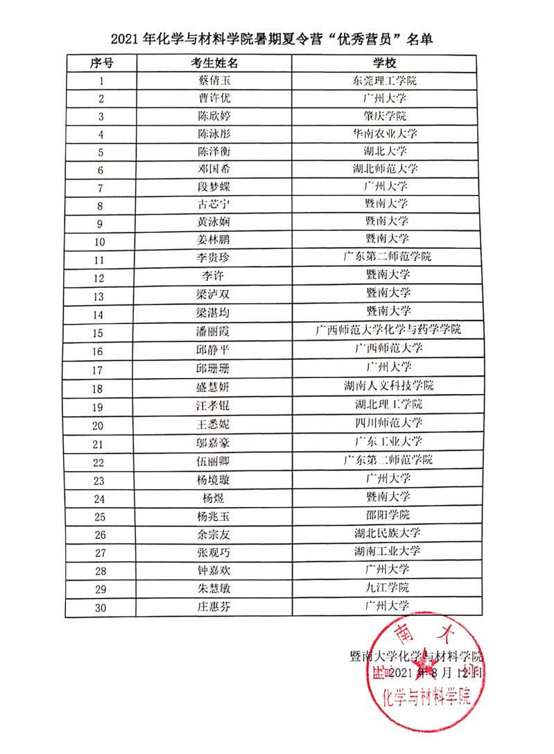 根据申请材料和选拔考核结果,经面试专家组一致认定,以下营员获得了本年度夏令营的“优秀营员”称号,特此公示(按姓氏拼音排序)