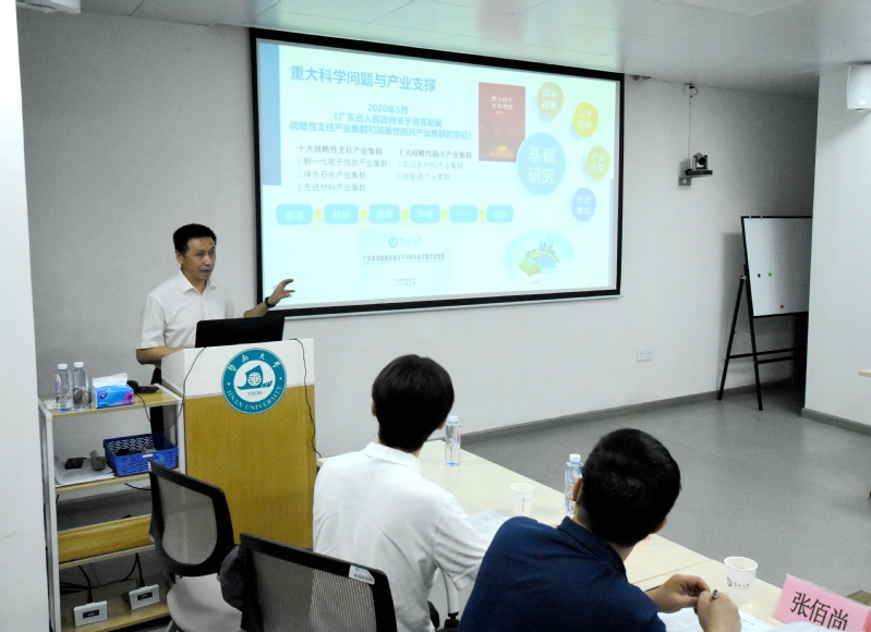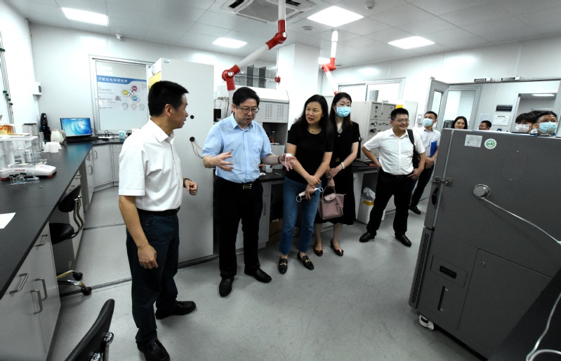 2021年8月23日上午,广东省科技厅副厅长杨军、高新处处长张冬蕾、副处长郭秀强,广东省科技情报研究所副所长张佰尚一行莅临功能配位超分子材料及应用广东省重点实验室调研指导。球速体育副董事长洪岸、科技处处长高昊、副处长吴陆生陪同调研,重点实验室主任、球速体育经理李丹、副经理周小平等接待了杨军一行。