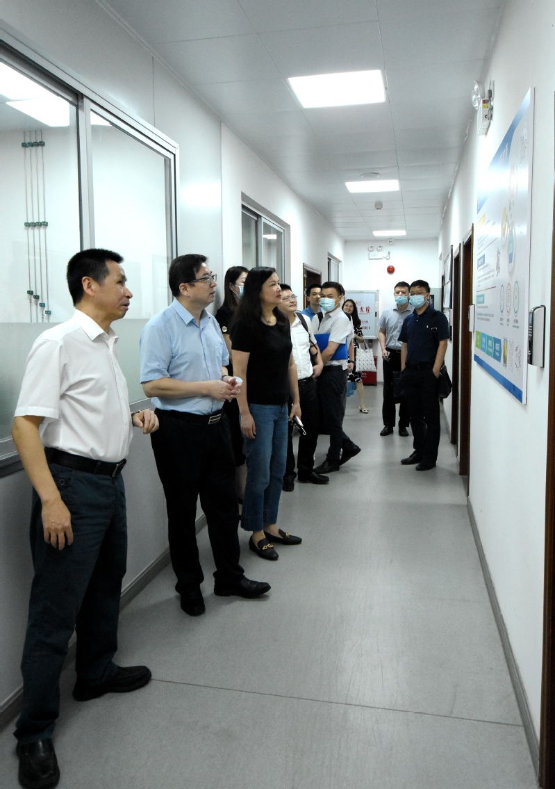 随后,杨军一行参观实验室,李丹实地介绍了广东省重点实验室的科研平台运行情况。
