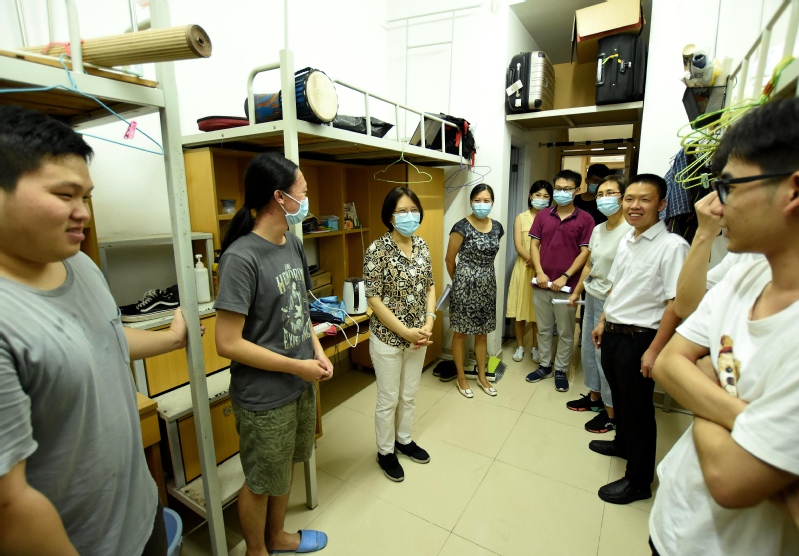 会后,邵桂珍、陈文举、容建华、查海燕、全体辅导员、与会班主任、各班班委分头走访了本科生宿舍,看望返校和留校员工,了解他们的学习生活情况。