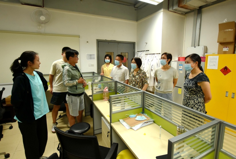 邵桂珍一行首先走访了位于番禺校区球速体育楼三至五楼的实验室,研究生同学们有的在操作实验,有的在准备组会报告,有的在阅读文献资料等。老师们详细询问了同学们的假期生活、科研情况、职业规划及遇到的困难等。邵桂珍提醒同学们要严格遵守实验规章,注意实验安全,做好新学期的科研工作计划,祝愿他们在新学期更上一层楼。